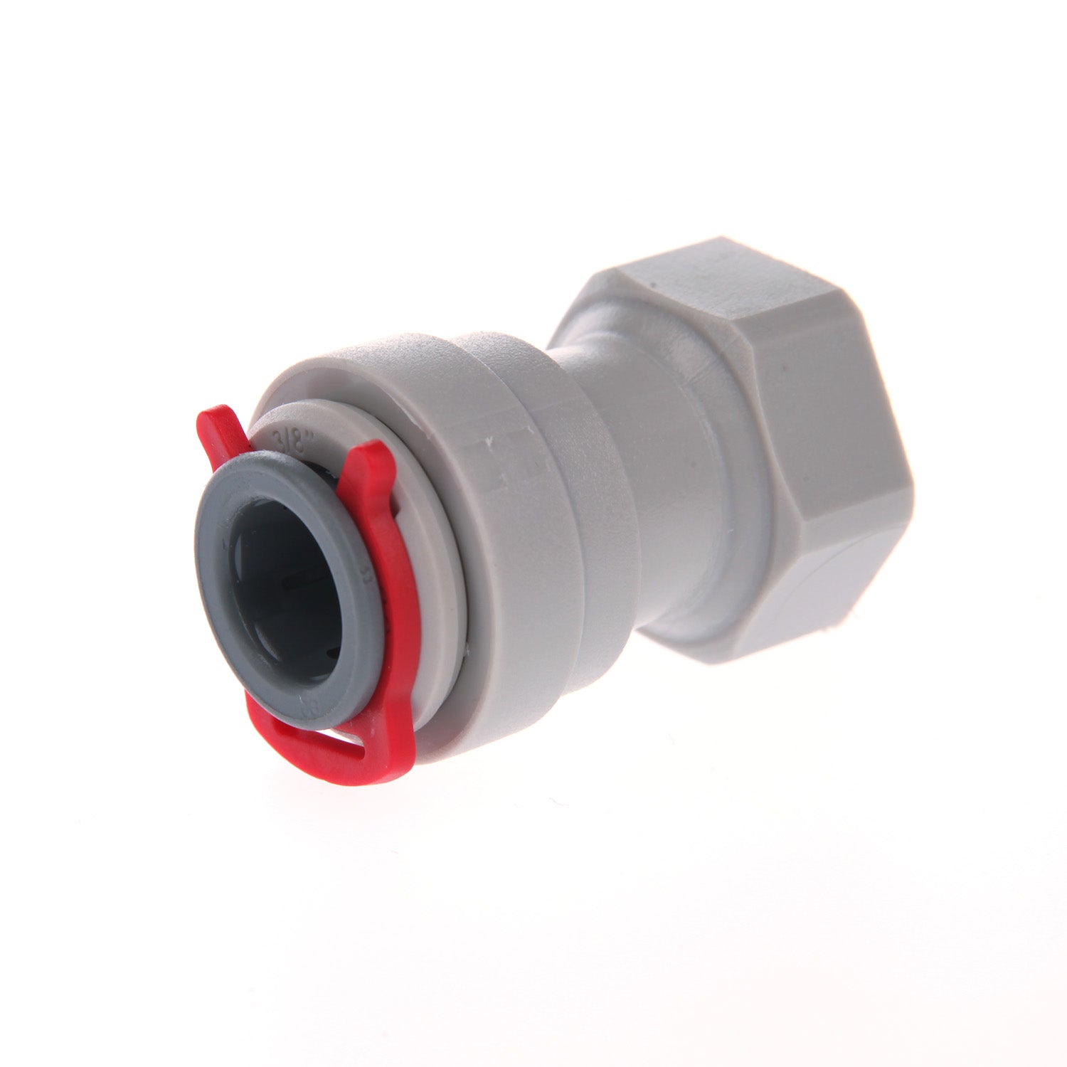 Dieses Adapter-Stück ermöglicht den Anschluss von z.B. Umkehrosmoseanlagen mit 3/8"-Kunststoff-Schlauch (z.B. Economy 3+) zu Entnahmehähnen mit 3/8" AG-Anschlüssen (kurzes Gewinde).