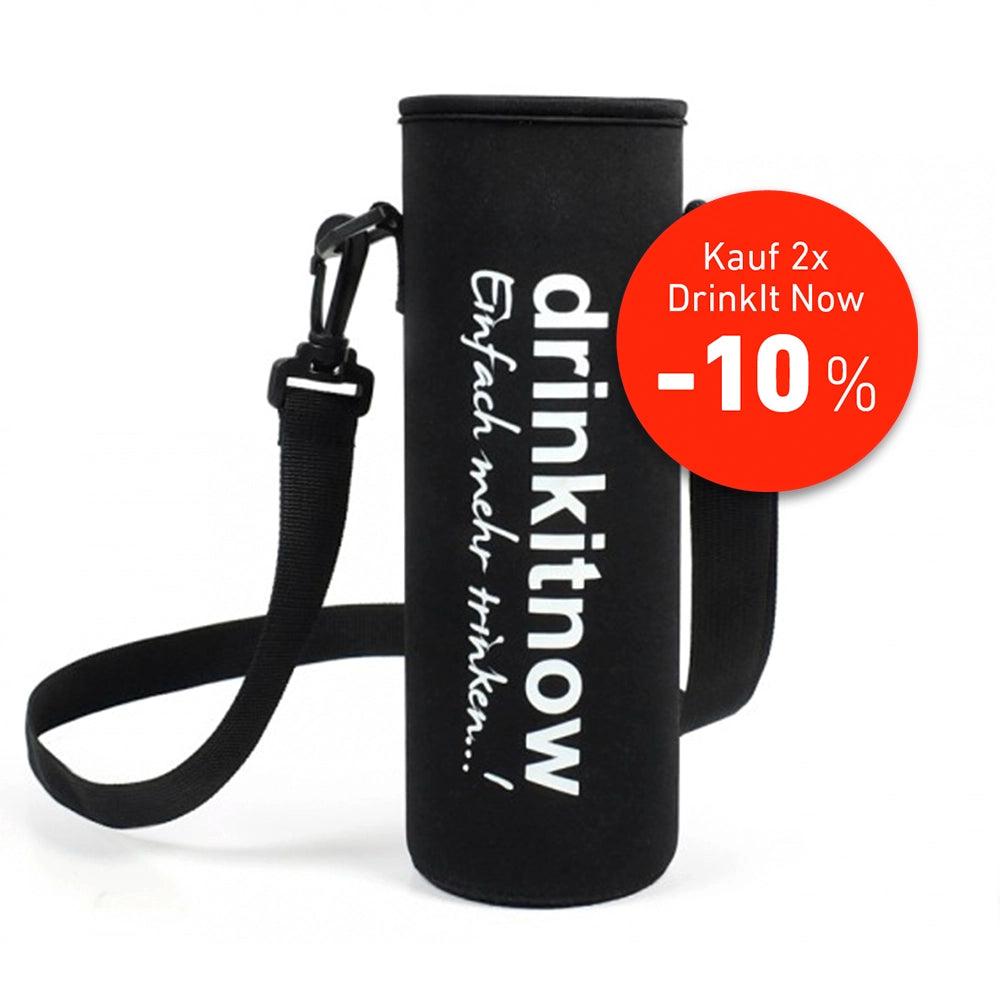 Neoprenschutzhülle und Cooler in einem, mit praktischem Tragegurt (ohne Flasche!)