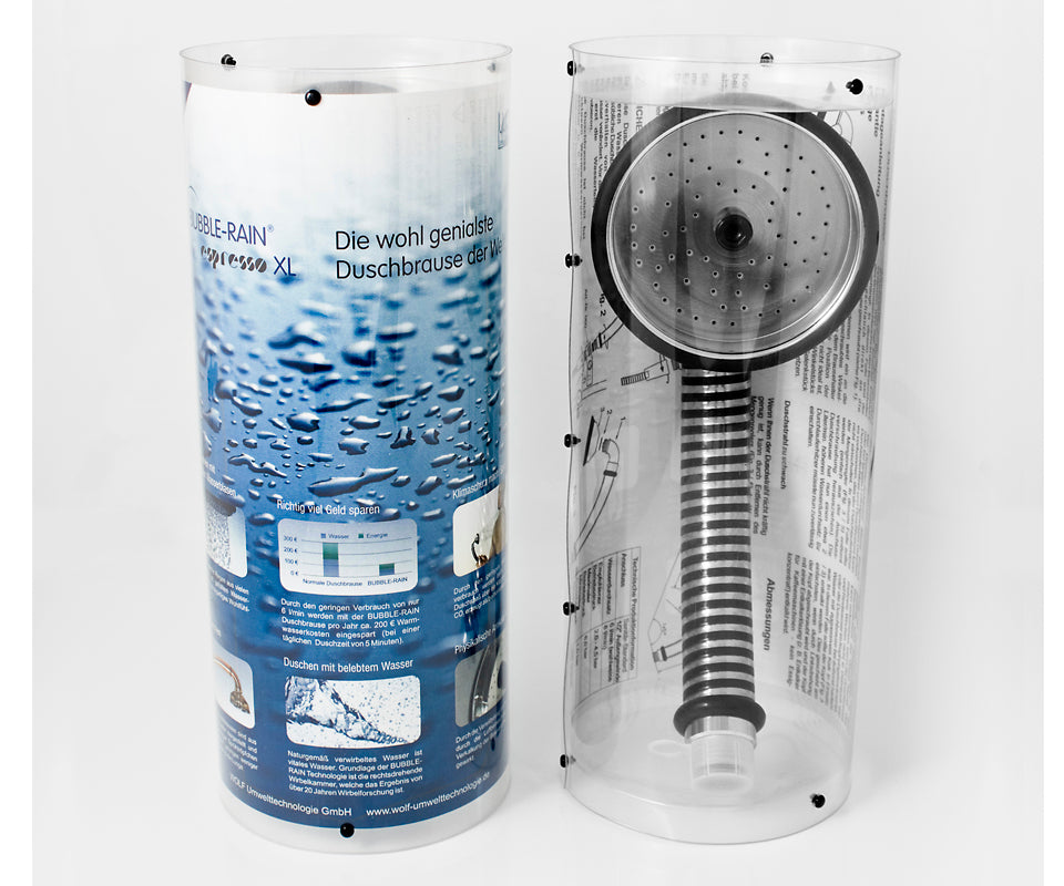 Duschen mit Wasserblasen - nicht nur ein geniales Wohlfühlerlebnis, es spart auch enorme Mengen Wasser und Energie. Zudem senkt es durch Minimierung von Aerosolen die Legionellengefahr und biete weitere gesundheitliche Vorteile... einfach genial.
