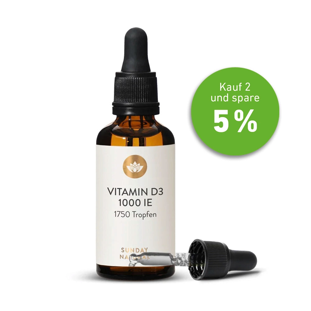 1750 Tropfen à 1000 IE Vitamin D3. Spezialangefertigter vegetarischer Premium-Wirkstoff ohne versteckte Zusatzstoffe, in hochwertigem, schützendem MCT-Trägeröl aus Kokos. Optimale Bioverfügbarkeit, ohne Gentechnik, Herstellung in der EU, 44ml. In einer Glasflasche mit Glaspipette.