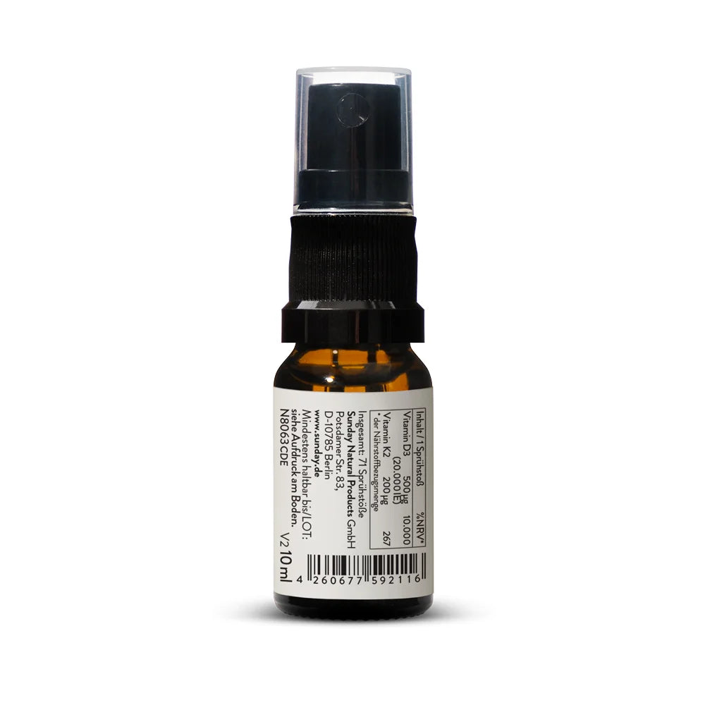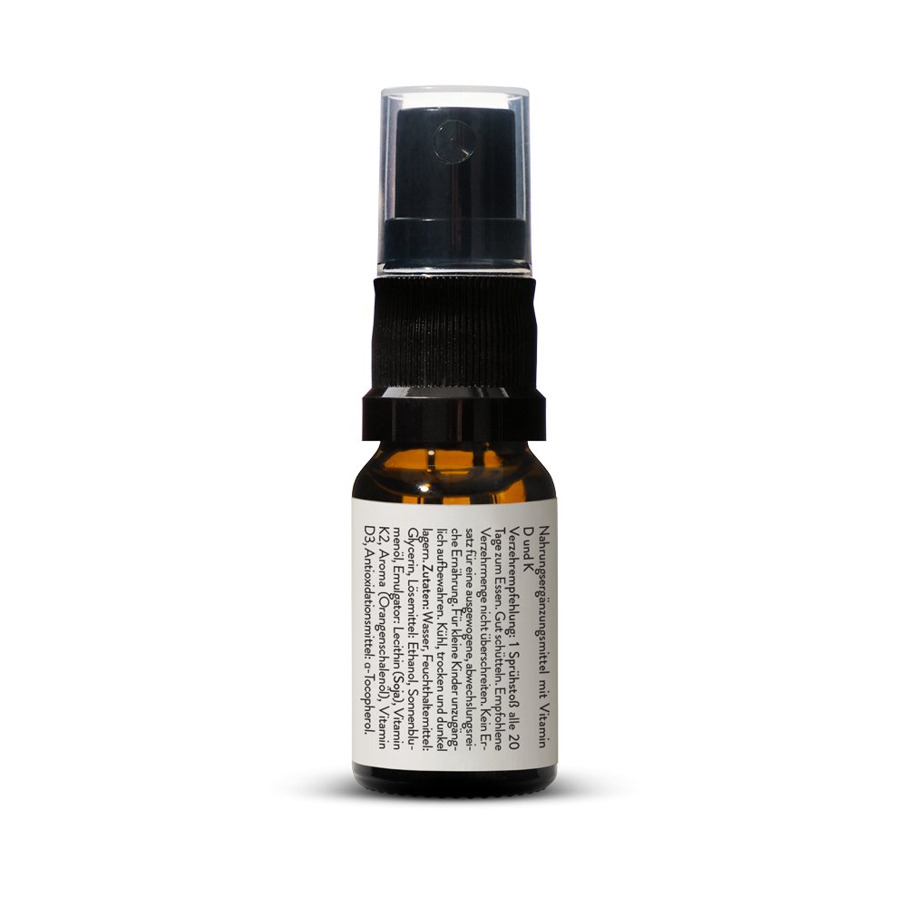 Besonders hochdosiertes Vitamin D3 + Vitamin K2 Spray mit 20.000 IE Vitamin D und 200µg Vitamin K2 pro Sprühstoß. Besonders effektive Aufnahme und 2-fach höherer Bioverfügbarkeit durch Verwendung einer Nanoemulsion mit Vitamin D3 und K2 MK7 all-trans (keine Nanopartikel!). Mit Orangenschalenöl für einen angenehmen und frischen Geschmack. Vegetarisch. 10ml Flasche à 71 Sprühstöße.