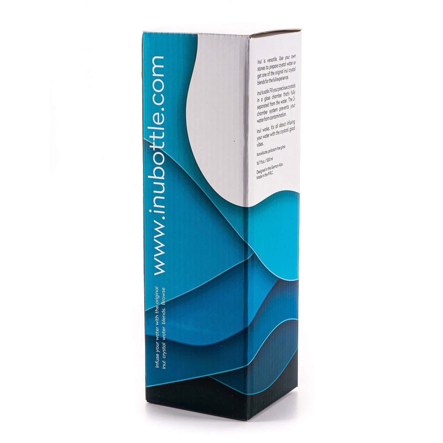 Das Konzept von inu! ist einmalig: Die separate Edelsteinkammer ist standardmäßig mit Bergkristall gefüllt, lässt sich jedoch im Handumdrehen öffnen und ganz individuell mit den eigenen Lieblingssteinen füllen. inu! Trinkflaschen bestehen aus Borosilikatglas, welches leicht aber äußerst stabil, chemikalienresistent und vor allen Dingen geschmacksneutral ist. Der Deckel ist aus super angenehmem Silk Touch Material und BPA-frei. Die inu! liegt wertig und geschmeidig in der Hand.