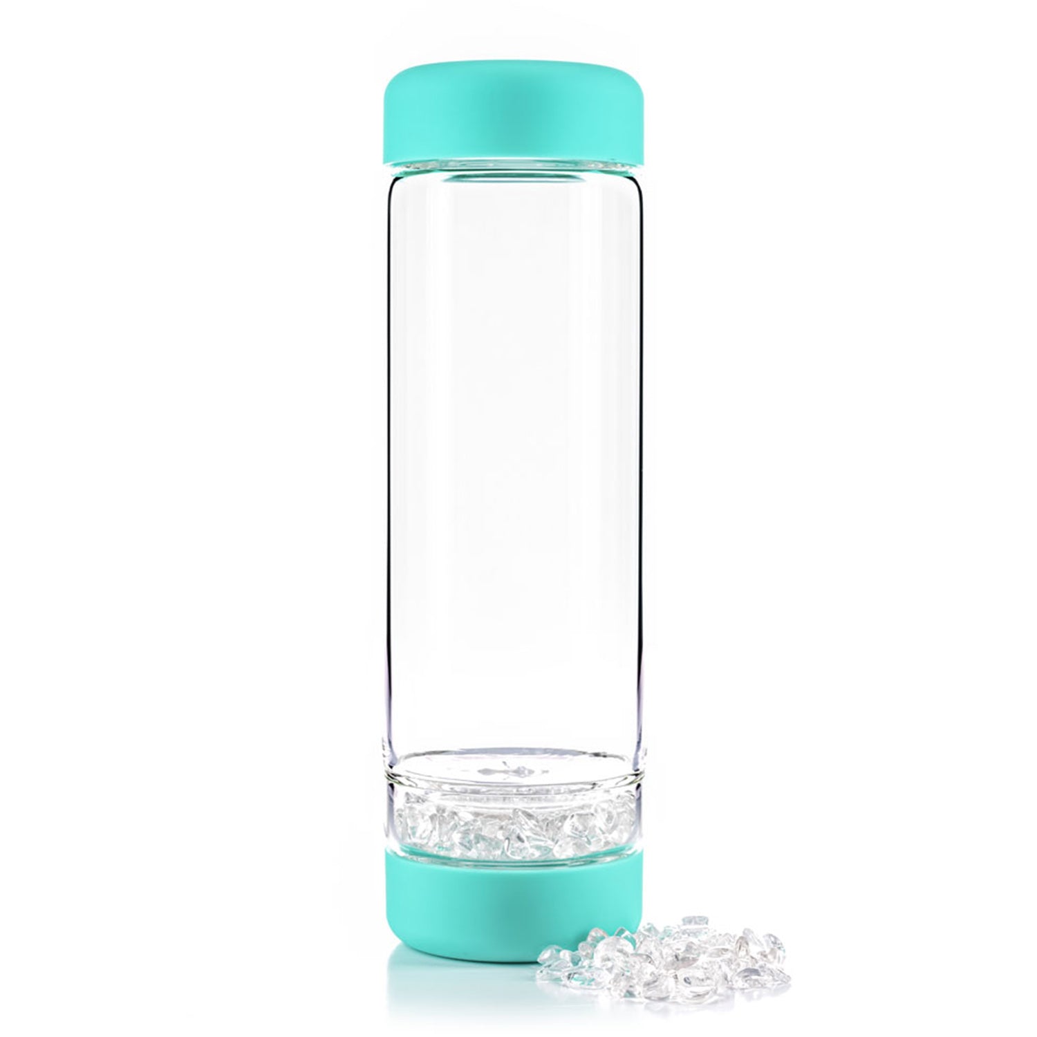 0,5 Liter Glasflasche mit Edelsteinen Set Bergkristall