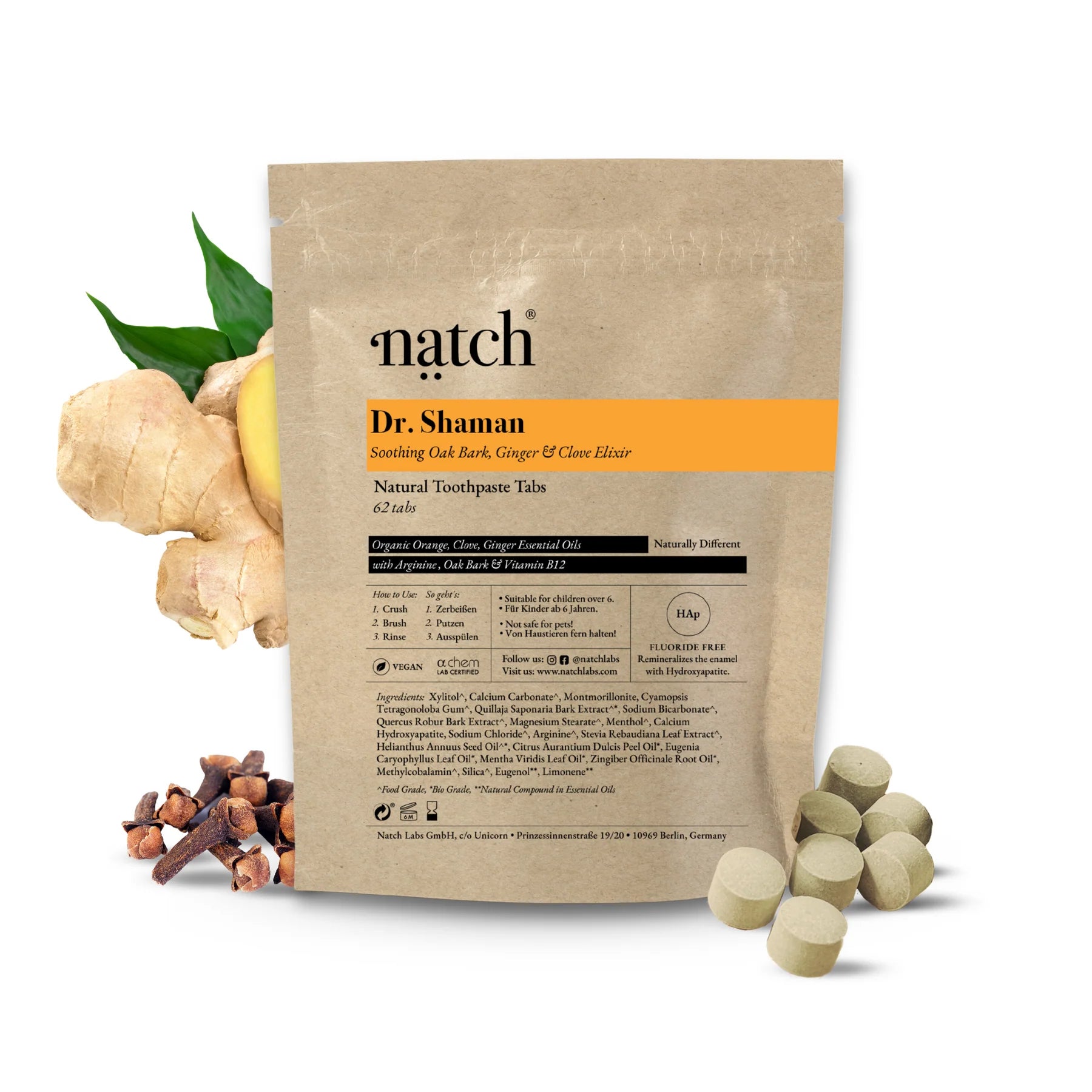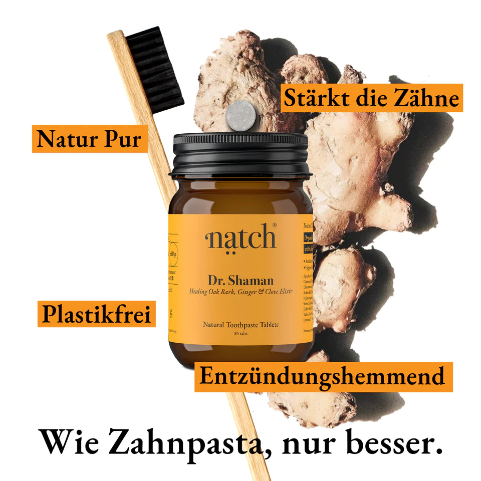 Erhalte einen 1-monatigen Vorrat von Tabletten in einem umweltfreundlichen Beutel geliefert mit 62 Tabletten. Für maximale Frische bewahren Sie die Tabs fest verschlossen in einem Beutel auf oder füllen Sie sie in Ihr Natch-Glasgefäß mit Deckel um.