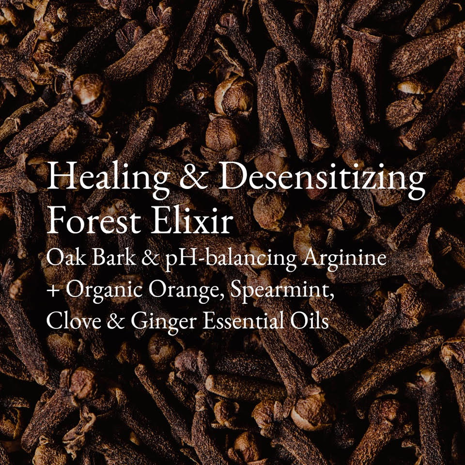 Eine spezielle Mischung aus ätherischen Ölen aus Nelke, Ingwer, Minze und Orange aus biologischem Anbau mit ihren natürlichen entzündungshemmenden und antimikrobiellen Eigenschaften; verstärkt mit L-Arginin, einer pH-ausgleichenden, pflanzlichen Aminosäure, und mit den adstringierenden, antibakteriellen Gerbstoffen der Eichenrinde, um die Empfindlichkeit des Mundes zu lindern.