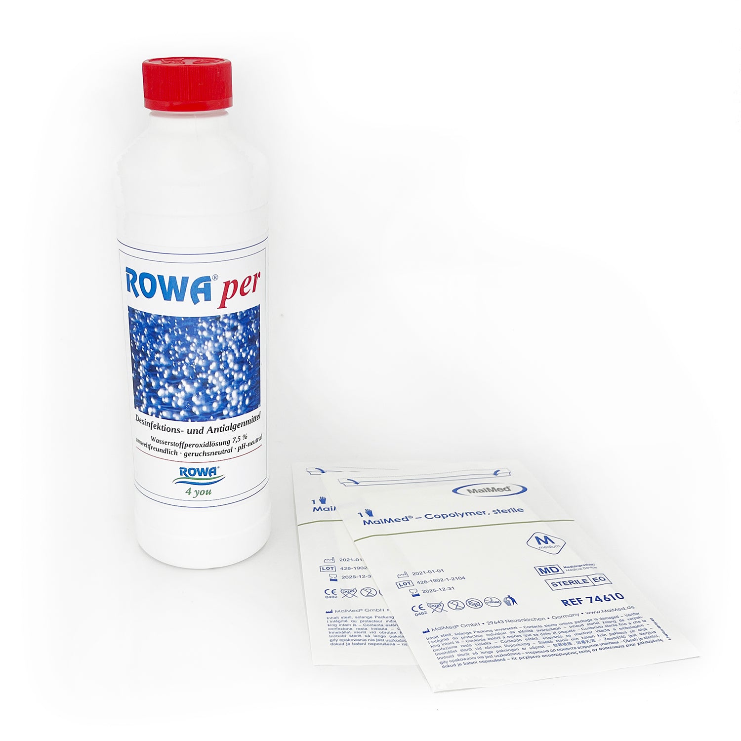 7,5% Wasserstoffperoxid mit 2x Einweghandschuhen zum reinigen und desinfizieren von Filter-Anlagen.