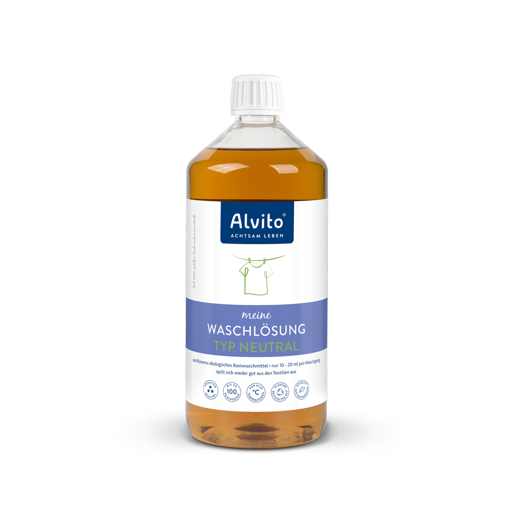 Das ökologische Waschmittel Neutral, passend zum Alvito Waschsystem: Flüssiges Basiswaschmittel – ohne Duftstoffe.