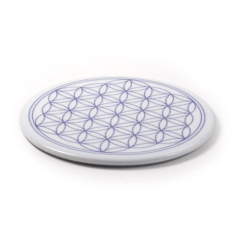Porzellan-Untersetzer, weiß mit Lebensblume in blau
