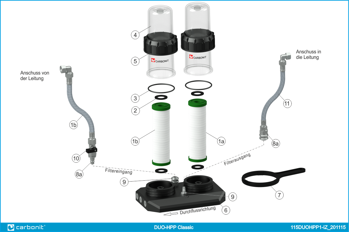 ein 2-Patronen-Untertisch-Wasserfilter für zwei parallel geschaltete Patronen, d.h. beide Patronen werden gleichzeitig durchströmt, somit können Sie ihr gesamtes Kaltwasser filtern. Der Filterwechsel erfolgt ohne Spezialwerkzeuge und ist kinderleicht mit Schnappverschlüssen bequem auf der Spüle durchzuführen. Exklusives und geschütztes Gehäuse aus deutscher Fertigung. Jedes Gehäuse ist mit seinem Herstellungsdatum versehen, dies erleichtert die permanente Qualitätskontrolle.