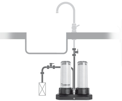 2-Patronen-Untertisch Wasserfilter für zwei Patronen parallel - für hohen Durchfluss.