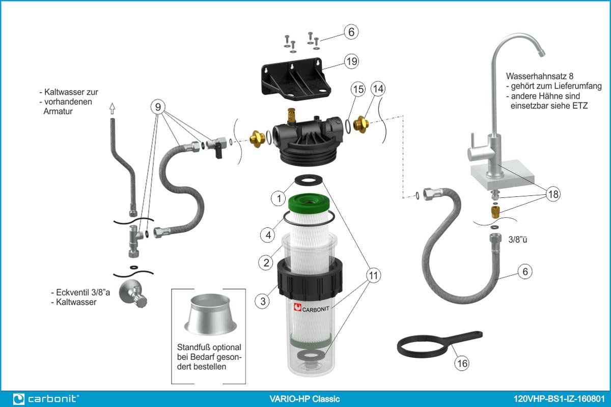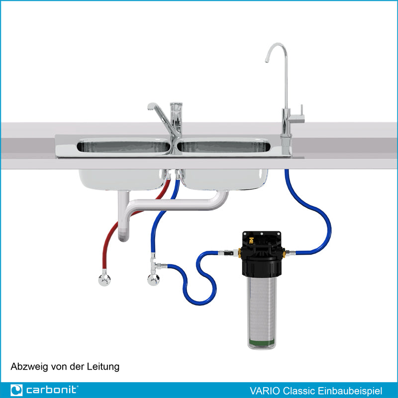 Flexibler Wasserfilter zum Einbau unter der Spüle inkl. Aktivkohlepatrone NFP Premium
