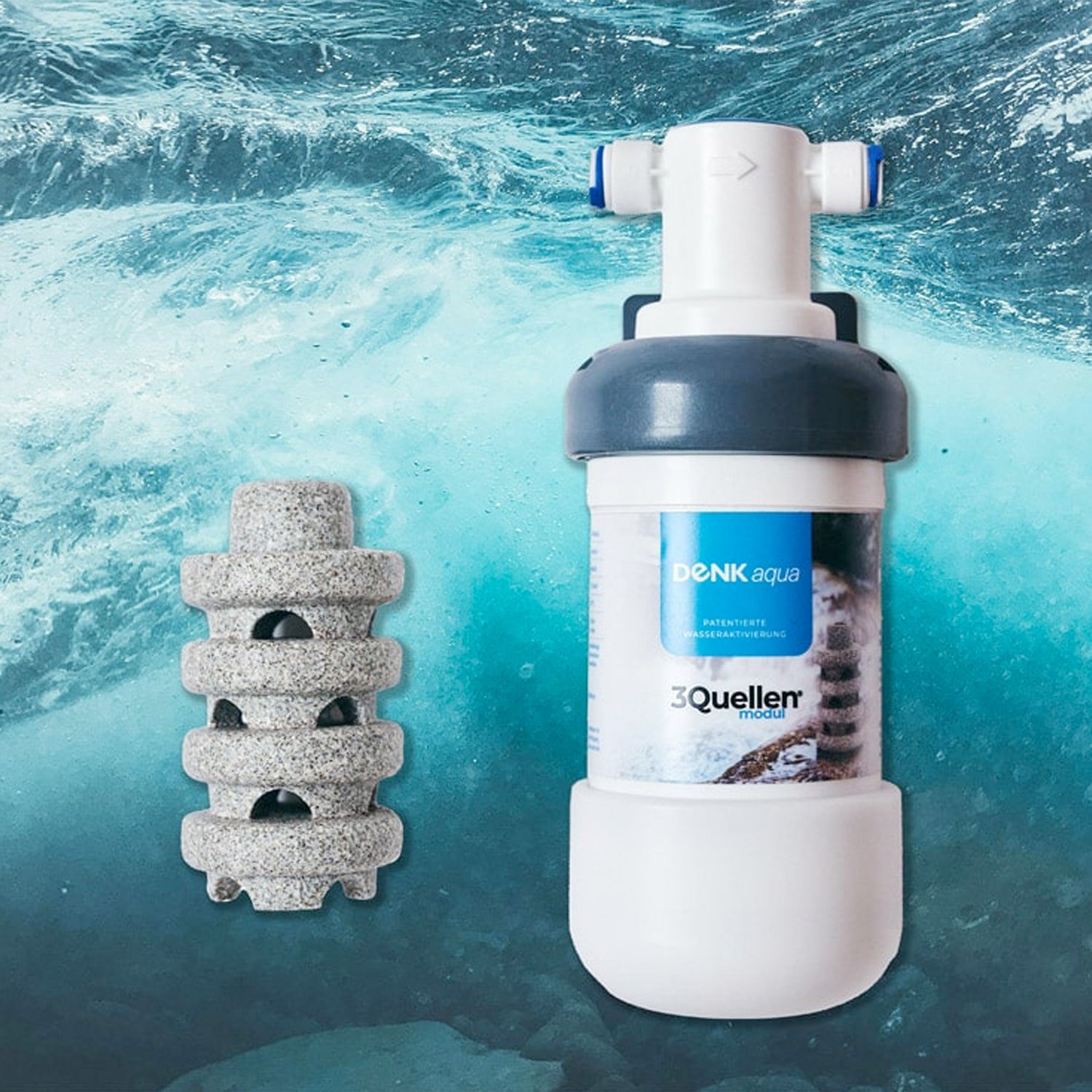 Get closer to your dream of fresh spring water with DenkAqua's 3Source technology. You can activate your tap water naturally, requiring neither electricity nor additives. The patented 3Source water activation combines three natural methods in one device.