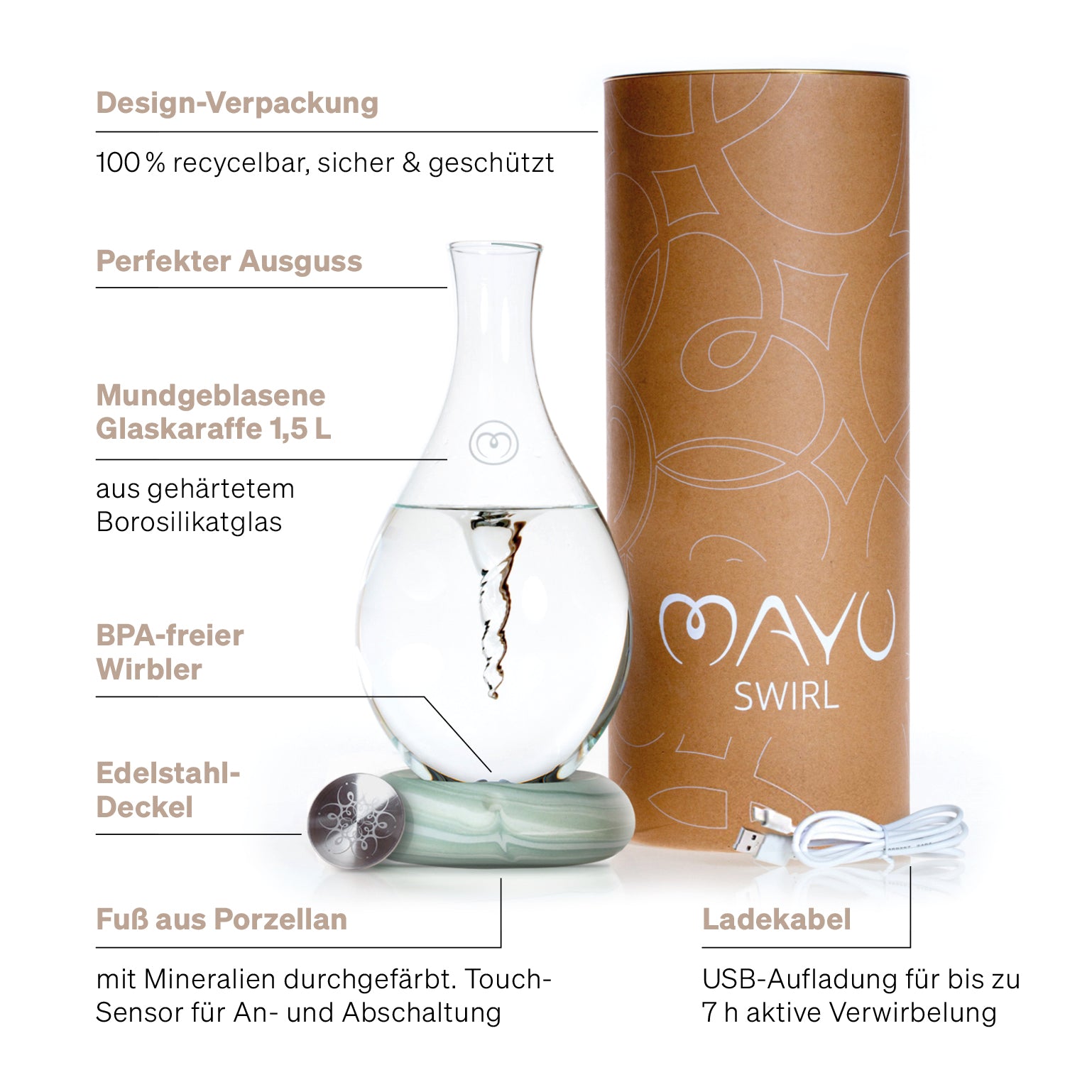 The Mayu Swirl is the first drinking water carafe with active swirling.