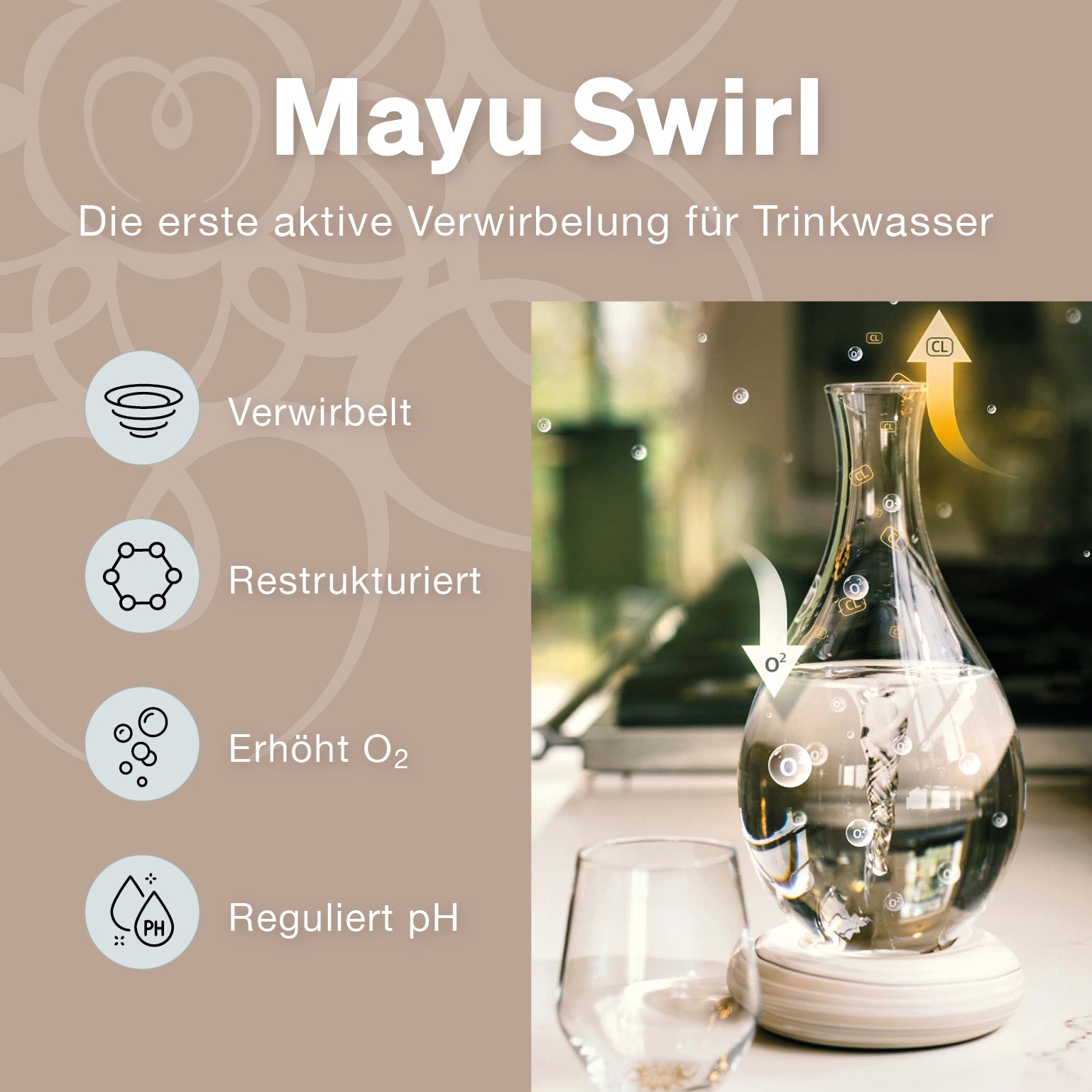 The Mayu Swirl is a high-quality, largely handcrafted and sustainably manufactured product for water revitalization.
