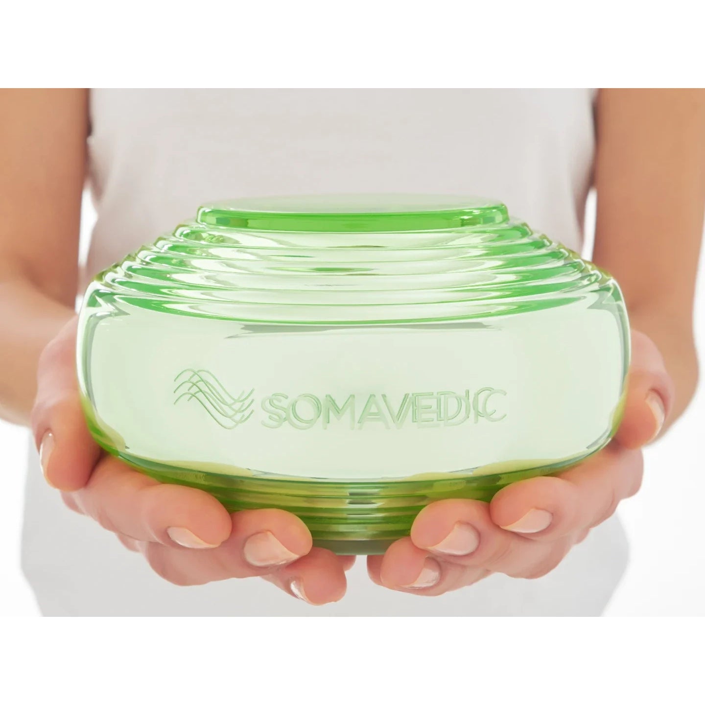 At the heart of Vedic is a combination of Tesla coils, various gemstones, and precious metals. All of these natural materials have a frequency. Somavedic's technology essentially strengthens them and amplifies them into your environment. This allows you to change the molecular structure of water into a crystalline geometric structure. Somavedic supports the body's natural regeneration processes, enables better sleep, raises energy levels, and can calm the parasympathetic nervous system.