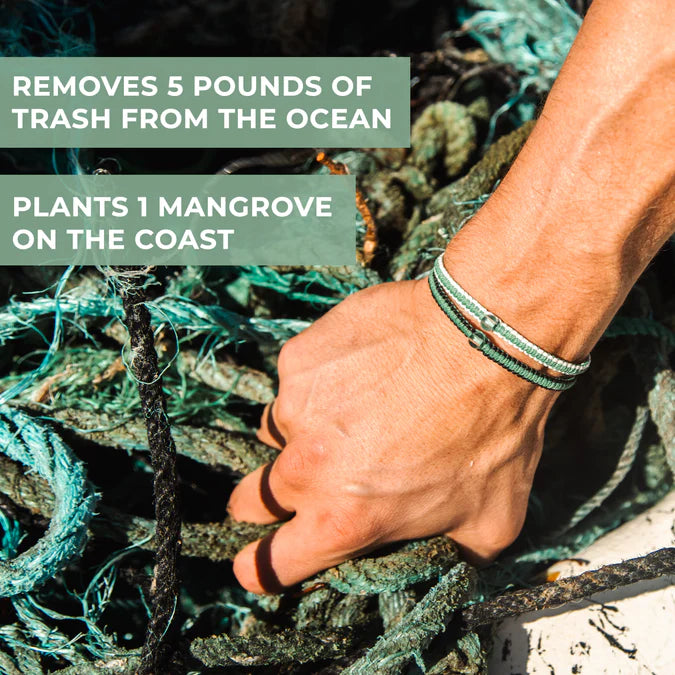 With each bracelet, 2.3 kg of garbage is removed from the ocean and a mangrove is planted.