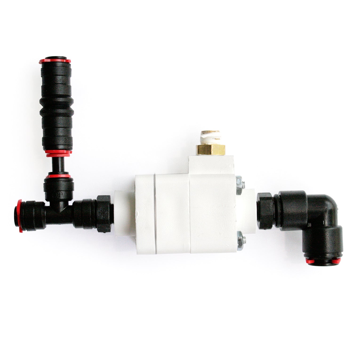 In case of malfunction of the shut-off without diagnosis: Installation set ROWA backpressure shut-off valve and check valve metric, for Turbo series and other metric reverse osmosis systems, including connectors