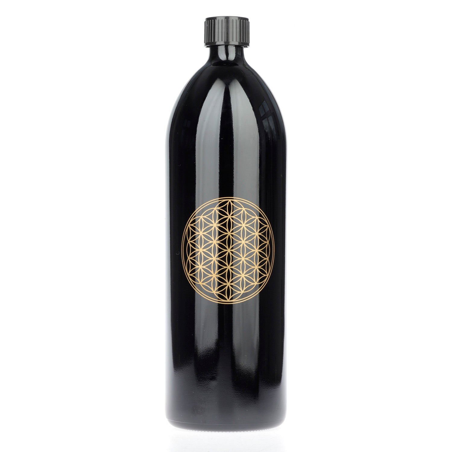 Flower of Life violet glass bottle 1000 ml, 2 x LB gold