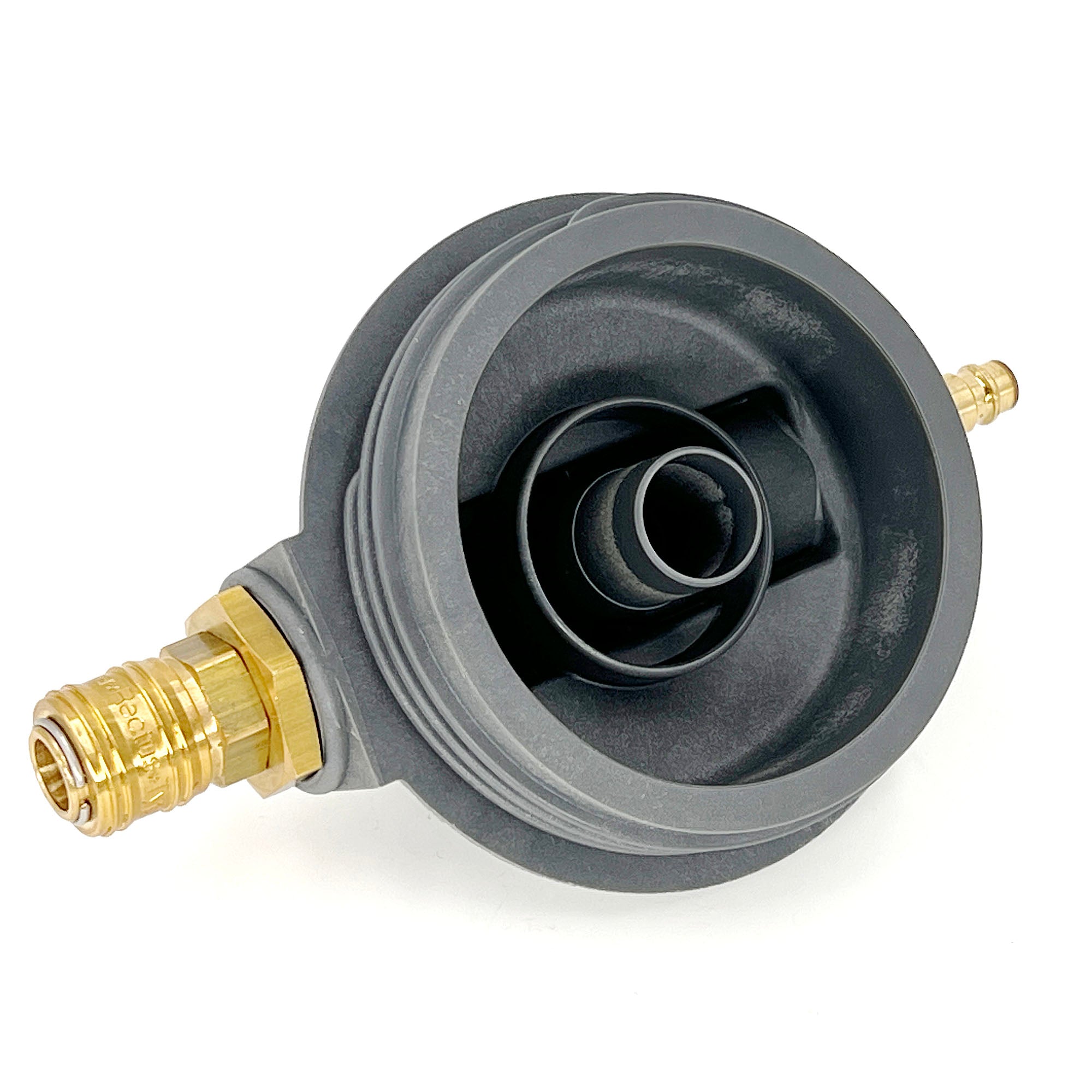 Gehäusekopf für graues neues Vario-Gehäuse, mit Messing-Entlüftungsventil zum Öffnen/Schließen
