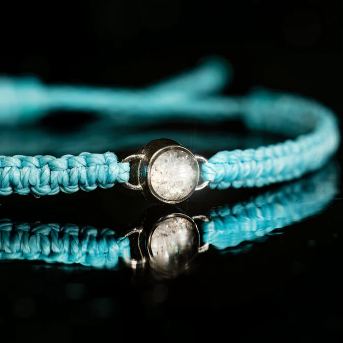 Jedes Armband finanziert die Entfernung von 2,3 kg Müll aus den Weltmeeren, Flüssen und Küsten. Das Armband verfügt über eine zentrale Fassung, die mit Mikroplastikpartikeln gefüllt ist, die von den Reinigungsteams von 4Ocean aus Meeren, Flüssen und Küsten entfernt wurden. Die Kordel aus 96 % recyceltem Material enthält Plastik, das von Kapitänen und Crewmitgliedern von 4Ocean gesammelt wurde. Der Anhänger ist aus 100 % recyceltem Edelstahl.