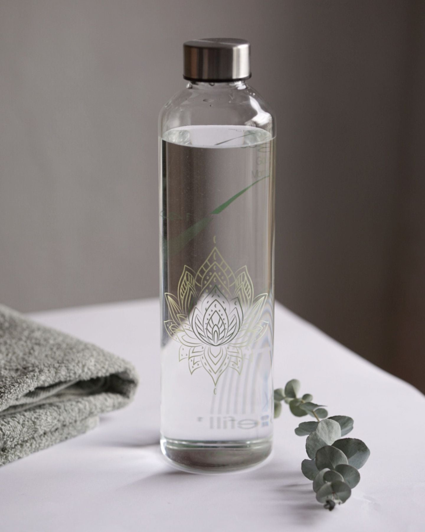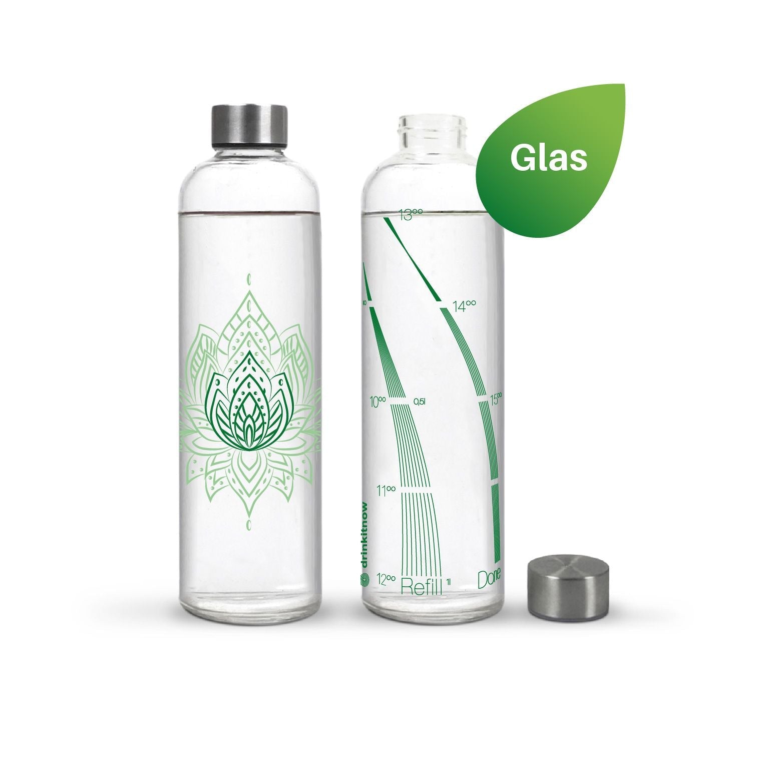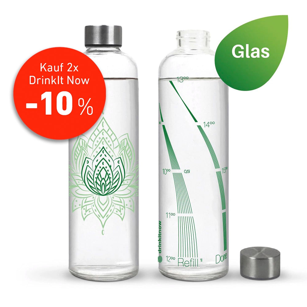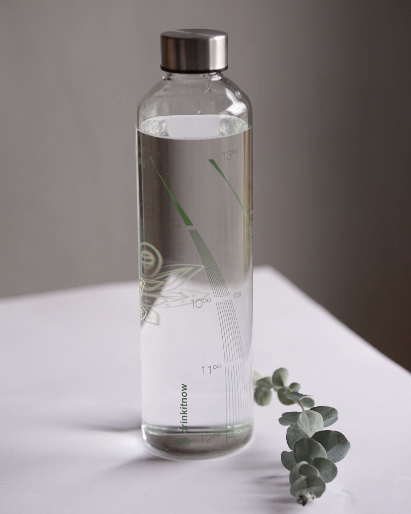 1-Liter Glas-Trinkflasche: Jetzt gibt es die Trinkerinnerung von drinkitnow auch für unterwegs.