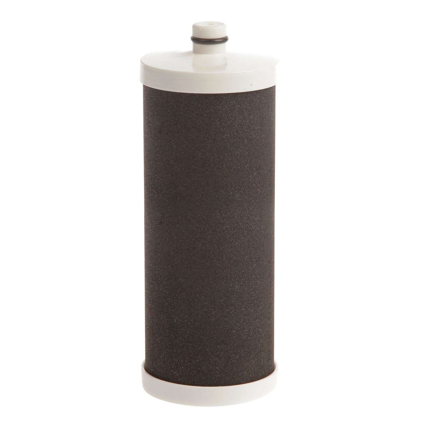 Carbonit® Monoblock: ein gebackener Blockfilter, mehrfach ausgezeichnet und wissenschaftlich anerkannt: Verbindet die bekannten adsorptiven Kräfte der gesinterten Aktivkohle (z.B. Pestizide) mit mechanischer Filtration (z.B. Bakterien). (Nicht zu verwechseln mit losen Schüttungen aus Granulatkohle oder extrudierten Blöcken).