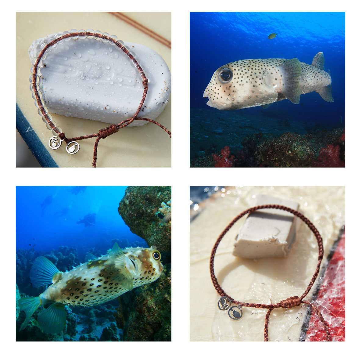 Sie helfen auch dabei, das Bewusstsein für diese majestätischen Tiere zu schärfen, dem sich dieses spezielle Armband "widmet". Kugelfische gehören zu den niedlichsten Fischen im Meer – und zu den tödlichsten. Diese skurrilen Kreaturen, die für ihre dramatische Reaktion auf Bedrohungen bekannt sind, faszinieren die Menschen seit Jahrhunderten. Und während die meisten Populationen als stabil gelten, sind einige anfällig für Bedrohungen wie Umweltverschmutzung, Lebensraumverlust und Überfischung. Ein Grund mehr für 4Ocean (und uns), das Engagement weiter zu forcieren.