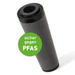 Die Filterpatrone GFP P200 besteht aus einem Aktivkohleblock mit einer Feinheit von 0,8 µm und einer Füllung mit PFAS-Absorberharz zur sicheren Entnahme von lang und kurzkettigen PFAS.