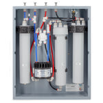 Vollautomatische 3-stufige Umkehr-Osmose-Komfortanlage) in besonders schlankem Gehäuse, mit Vorratstank, abwassersparend.