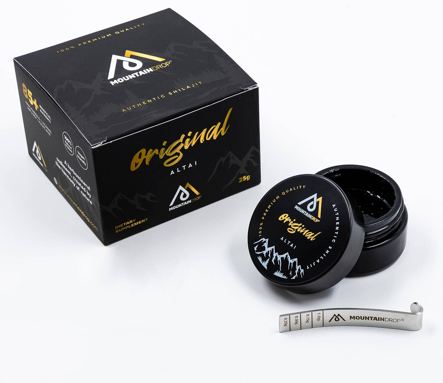 Darüber hinaus verfügt jedes Gefäß Mountaindrop Shilajit über eine Sicherheitsdichtung und eine LOT-Nummer, um die Produktsicherheit zu gewährleisten.