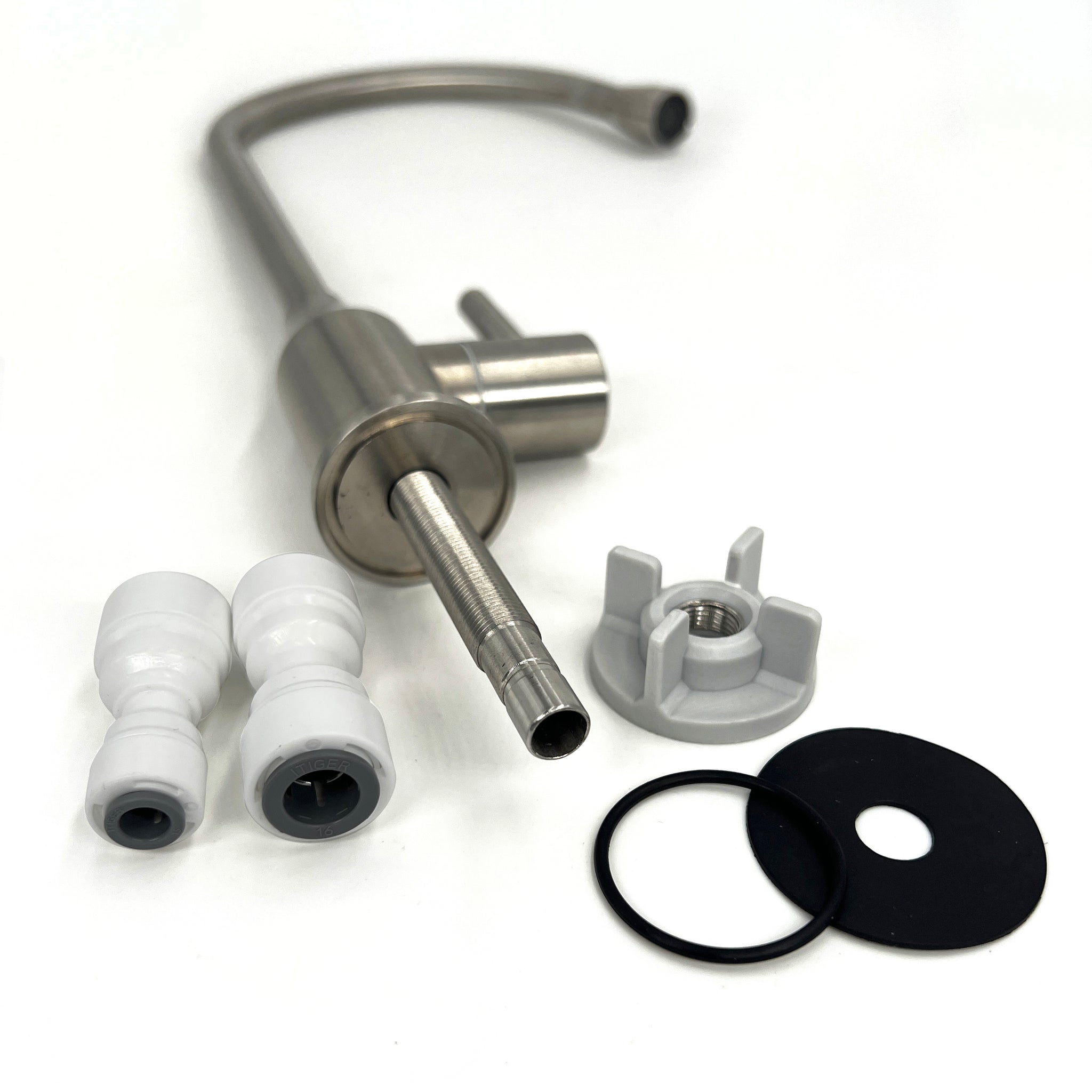 • Schlauchanschluss für 1/4" Umkehr-Osmose vorbereitet