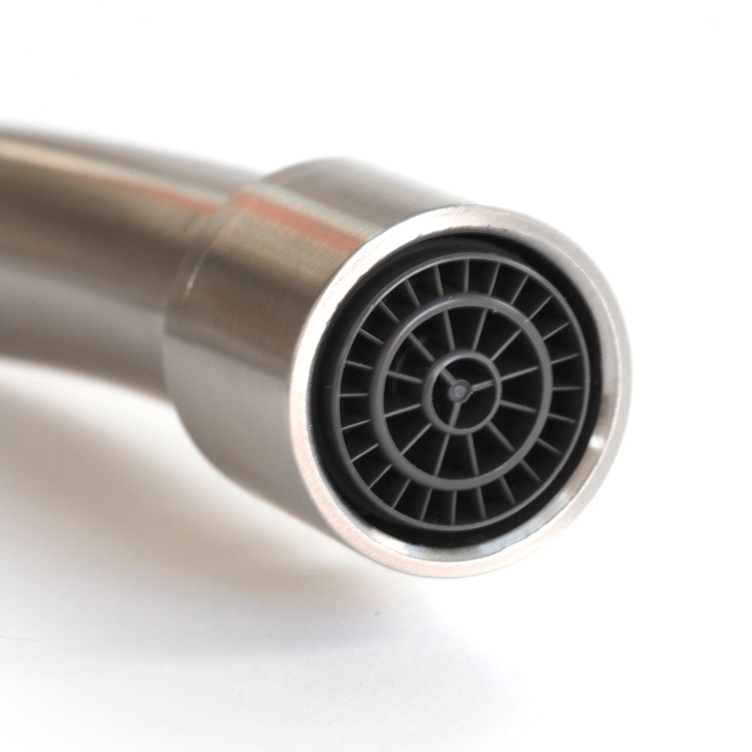Kräftiger Design-Wasserhahn komplett aus Edelstahl, mit Feingewinde M22 am Auslauf für den Anschluss eines Wasserverwirblers.